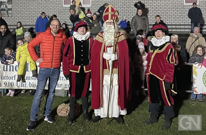 Pünktlich gegen 18 Uhr traf er mit seinen Gehilfen im Sportpark des FC 09 ein. Dort wurden sie nicht nur von mehreren Hundert Kindern, die in Begleitung ihrer Eltern und Großeltern waren, empfangen, sondern auch vom Samtgemeindebürgermeister und Stadtdirektor Manfred Windhaus und dem Bürgermeister der Stadt Schüttorf Jörn Tüchter.